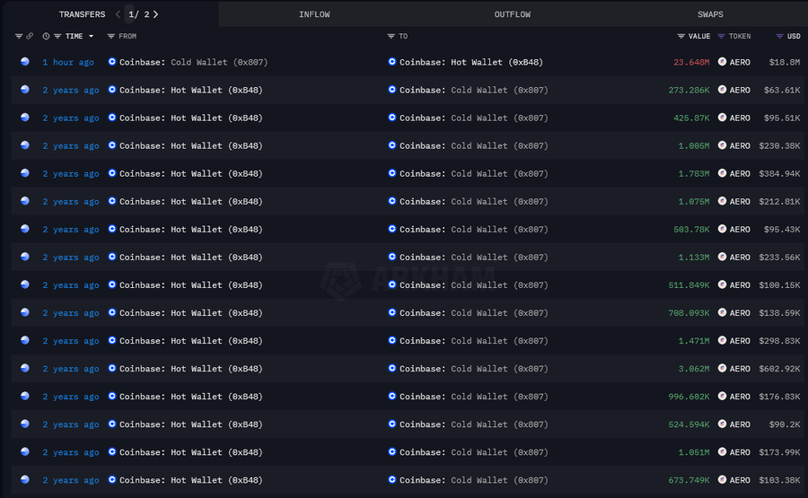Crypto analyst Ozzy lately revealed that a big whale within the AERO market, who initially purchased 24 million tokens on February 27, 2024, has really transferred all the quantity to Coinbase. Such is the quantity of the transaction that it’s already elevating speculations over doable promote volumes within the coming days.