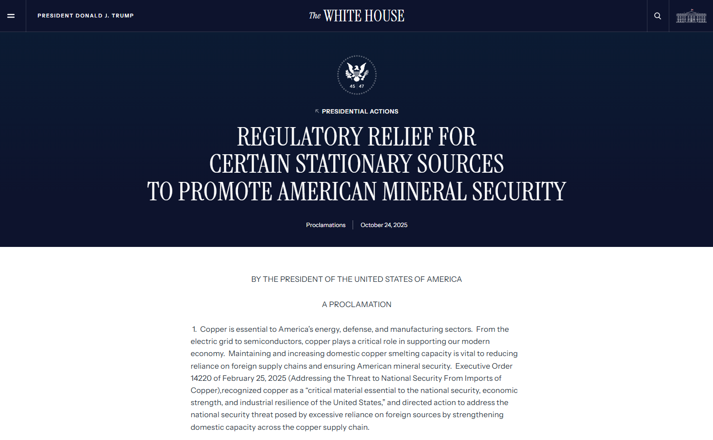 The White Home emphasised that the proclamation is geared toward bolstering American mineral safety and decreasing reliance on international processing, significantly by avoiding near-term disruptions at named U.S. smelters whereas sustaining environmental oversight. Impartial reporting identifies at the least one U.S. main copper smelter among the many amenities receiving reduction. 2