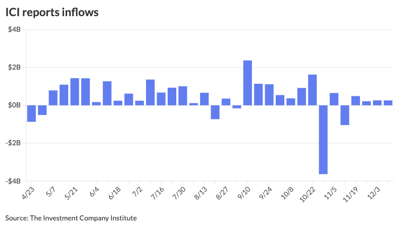 The Funding Firm Institute Wednesday reported inflows of $260 million for the week ending Dec. 10, following $262 million of inflows the earlier week.