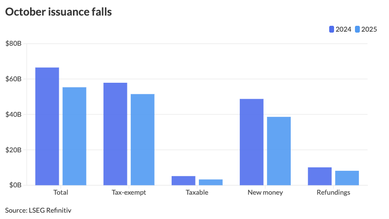 “Washington’s shutdown, geopolitical shockwaves, and a Treasury market that whipsawed on each headline turned October right into a no-fly zone for public finance officers,” he stated. “Volatility is the enemy of execution, and in October it was operating the present.”