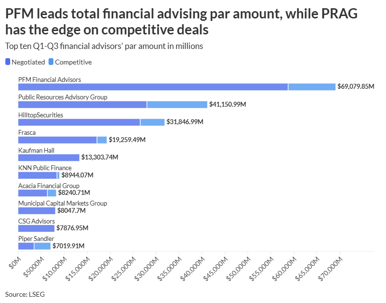 PFM was the highest underwriter for Q1-Q3, advising practically $70 billion in par.