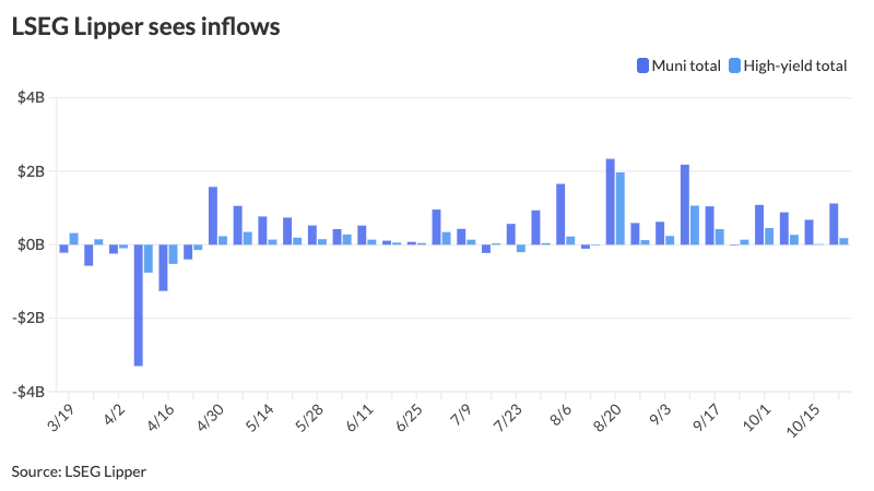 Buyers added $1.123 billion to municipal bond mutual funds within the week ended Wednesday, following $678.1 million of inflows the prior week, in response to LSEG Lipper information.