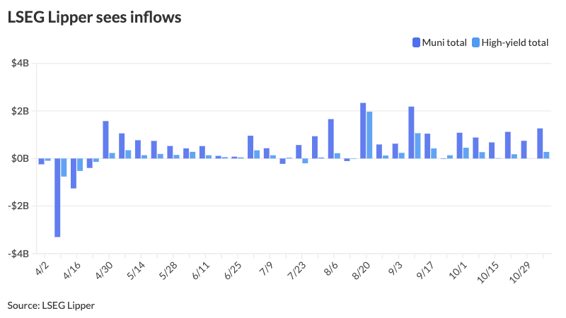 Munis profit from a “highly effective” seasonal tailwind into yearend, mentioned BlackRock’s Patrick Haskell, head of the municipal bonds group; James Schwartz, head of municipal credit score analysis; and Sean Carney, CIO of municipal bond funds.